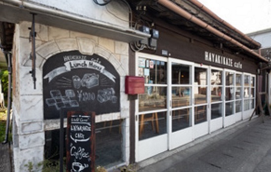 古民家風の佇まいの中は、明るくおしゃれなインテリア。「HAYAKIKAZE CAFE」は建物のリフォームやリノベーションを手がける「はやき風株式会社」運営のカフェ。こちらで提供される斬新なメニューが「喜連川サンド」。トーストしたパンに喜連川で養殖されているプレミアムヤシオマスをはさんだ食べ応えのあるサンドイッチです。クセがなく柔らかな身のヤシオマスとたっぷりの野菜、そしてアクセントに入れたナスの漬物の組み合わせは今まで食べたことがない美味しさ。見た目も美しい喜連川ならではの一品です。