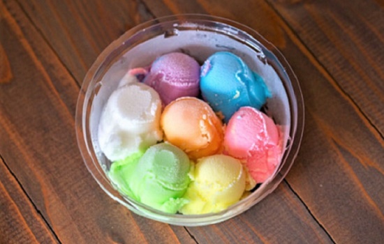 カラフルな色とりどりのアイスクリーム。ポップな見た目とうらはらに、アイスクリームとシャーベットの間のようなさっぱりとした味わいの「レインボーアイスクリーム」は、「江連商店」が商標登録したこの店だけのもの。実は30年前から製造・販売されているロングセラー商品です。ほんのりフレーバーが香るバニラ・メロン・バナナ・イチゴ・ブルーハワイ・グレープ・オレンジのアイスは昔お祭りで食べた懐かしさ大人も子どもも食べたくなる味です。
