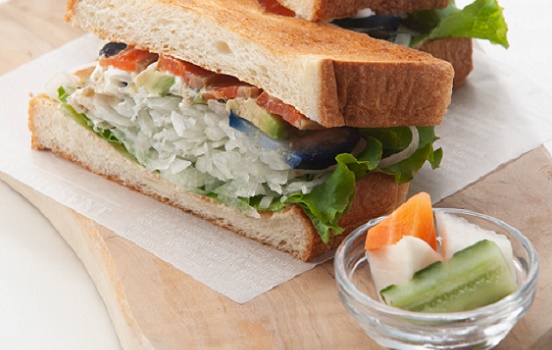 喜連川産プレミアムヤシオマス×ナスの漬物の新感覚サンド。