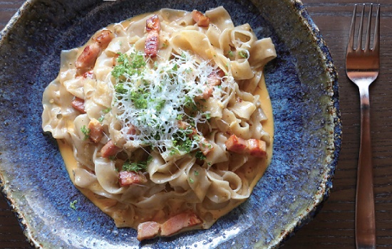 知られざる小麦の産地であるさくら市氏家地区。その氏家で良質な地場産小麦「イワイノダイチ 」から作られたうどんが「氏家うどん」です。「氏家うどん」の大きな特徴は、何と言っても小麦本来の味と香りをダイレクトに感じられること。小麦を皮ごと挽いた地粉のほんのりと茶色がかった色、適度な粘りとコシを持つ素朴な味わいは、かけうどん、つけうどんはもちろん、和洋中のさまざまなアレンジメニューとしても楽しめます。