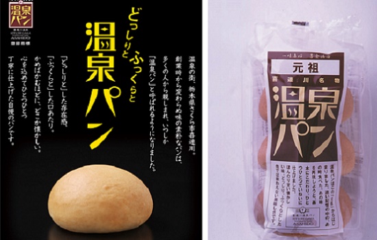 「温泉ぱん株式会社」は、 昭和16 年に前身である「あさひ堂」の創業以来、78 年にわたって地域内外に愛されてきたパン屋さん。看板商品の「温泉パン」は、昭和30 年ごろ当時のパン職人が食パンの余り生地を使って考案し、瞬く間に評判を呼びました。大人も子どもも大好きなパンは、独自の配合・熟成を取り入れた製法で作られ、ずっしりと重みがあり、ふっくらモチモチの食感が特徴。食事に、おやつに毎日食べたいパンです。